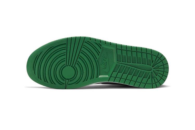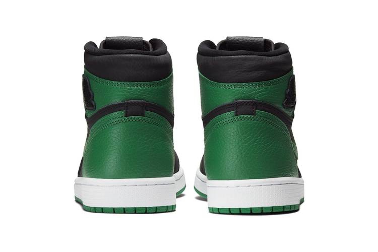 Just like it’s predecessors before it, these Jordan 1’s offer a two-tone color scheme that showcases the Pine Green and Black, and is constructed from premium tumbled leather. The Jordan Brand branding is courtesy of the all-black patent Wings badge at the collar along with “Nike Air” in red.