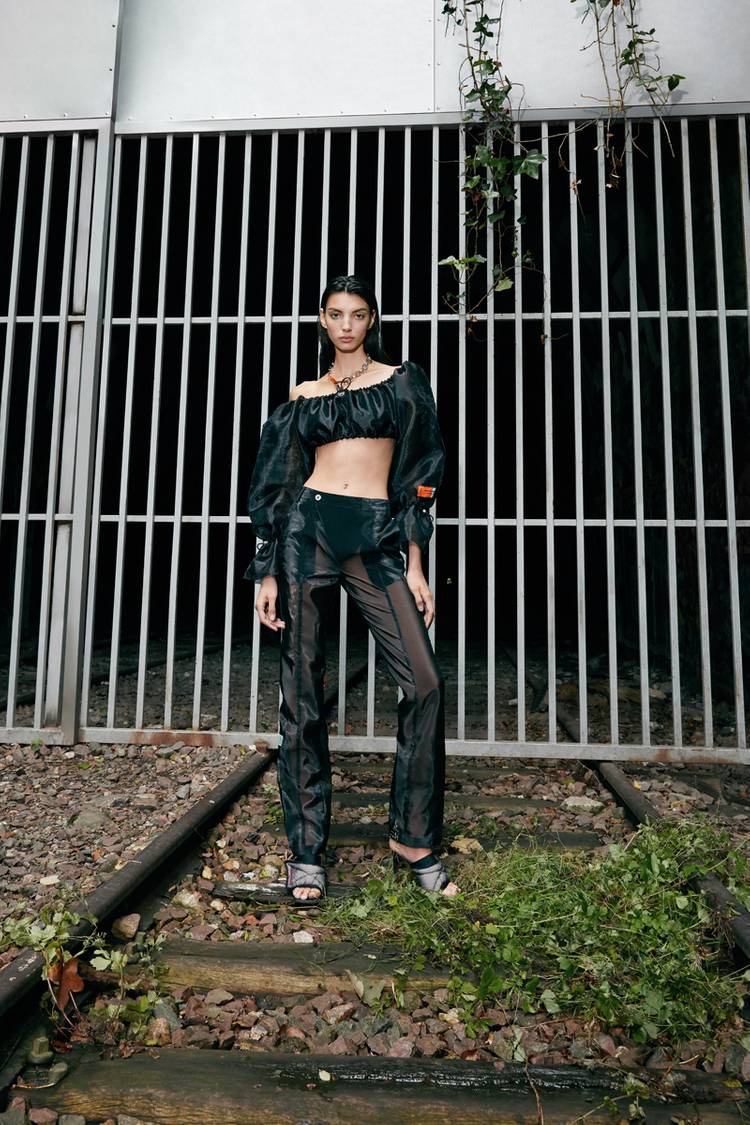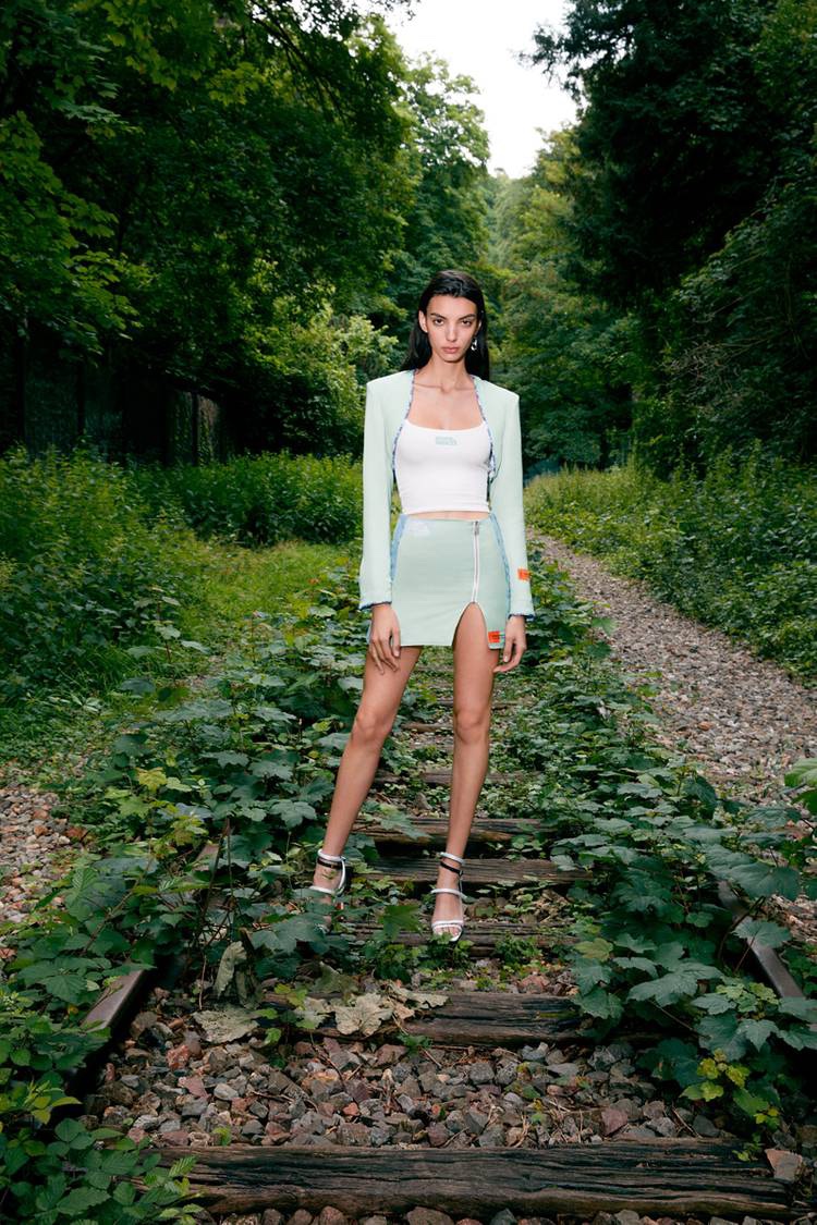In this collection you will find bold designs like mesh bodysuits mixed with denim and black leather dresses with zip-ups on the front and side cut-outs. Miró’s influence is also a focus of the collection, showcasing the designers signature patchwork throughout the pieces.