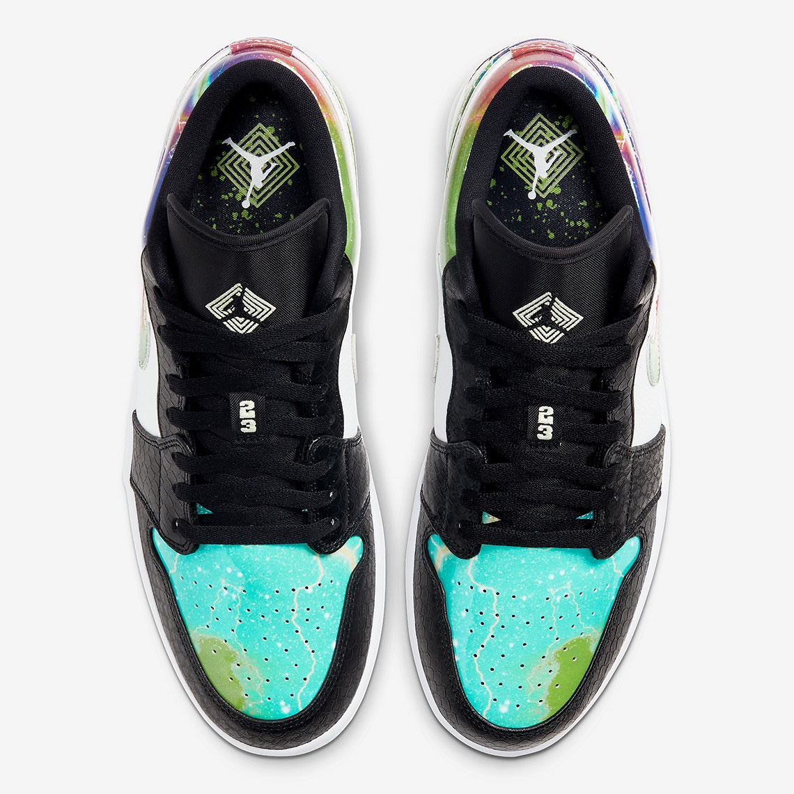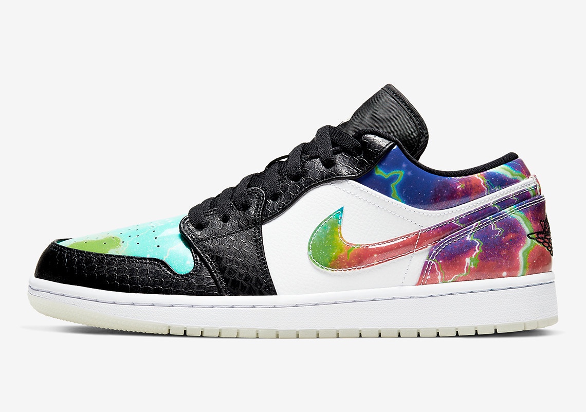 Summer 2020 proves to be the season of hot releases despite the COVID-19 pandemic pushing some sneakers back. If the schedule remains the same then we might also be seeing these Air Jordan 1 Low ‘Galaxy’ models in the coming months. This silhouette features a Galaxy theme filled with vibrant colors and lightning graphics seen throughout the heel, swoosh and toe box areas. Finishing off the details, and one of the standout features, happens to be the leather which resembles snake skin fabrications on the toe box leading to eyelets.
