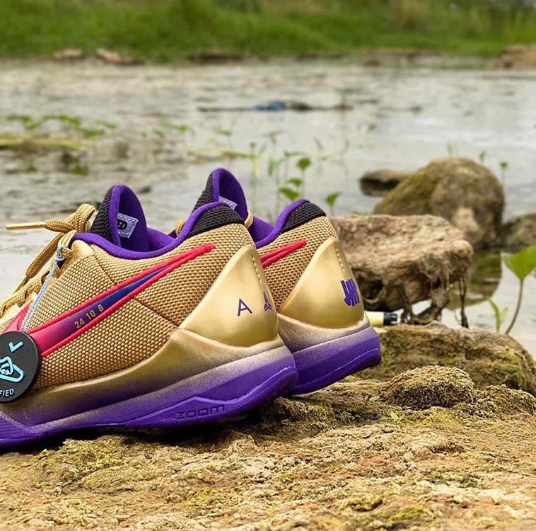 The Undefeated x Nike Zoom Kobe 5 Protro, properly named “Hall of Fame,” will come in a Lakers gold, purple, and black colorway which will honor Kobe’s legendary career with the franchise.