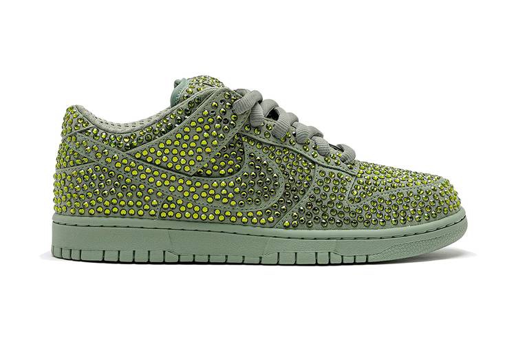 First seen on feet by Travis Scott, wearing the “Pure Platinum” colorway, CPFM has now opened an official raffle for this collab to give everyone else a chance to purchase. The CPFM x Dunk Low “Spiral Sage” features an upper covered with Swarovski crystals which symbolizes CPFM’s theme of air and sunshine through dynamic light refraction. A padded tongue, Double Vision smiley shoe tag and detachable double lace flap round out the details.