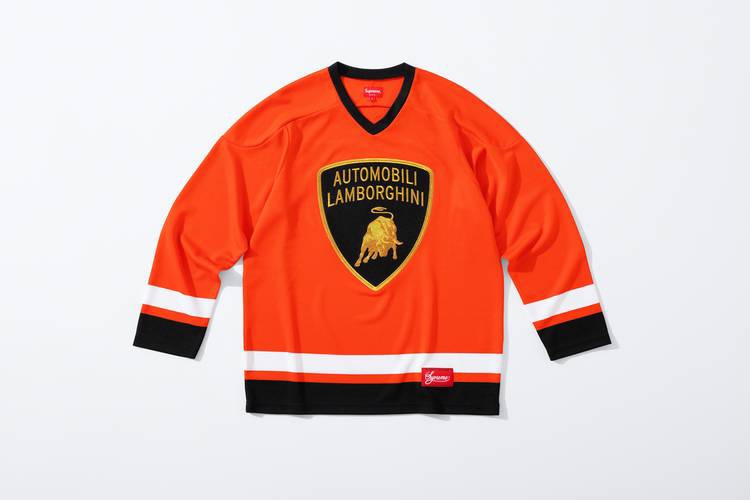 Pieces in the collection include jackets, tees, coveralls, hockey jerseys, long sleeve tees, skateboards and beanies. Color tones for the collection are just as vibrant as the cars themselves with neon green, blaze orange and black. The Supreme branding and iconic bull emblem is prevalent on all pieces which makes each article pop just as Lambo founder Ferruccio Lamborghini intended when he introduced the emblem on his automobiles in 1963.